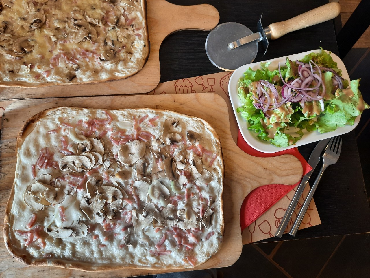 사진은 한국 친구가 프랑스로 놀러왔을 때 같이 먹었던 플람쿠슈베라는 알자스 지방의 전통음식이다. 맛은 피자랑 매우 비슷하다. 회사 근처에는 플람쿠슈베 식당이 없어서 매우 아쉽다. 내가 좋아하는 몇 안 되는 프랑스 음식인데 말이다.